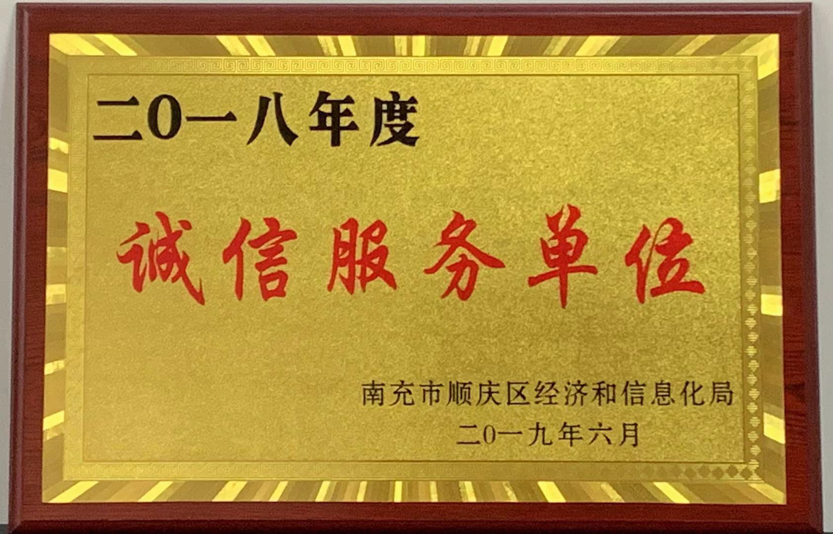 我公司獲得2018年度誠信服務單位