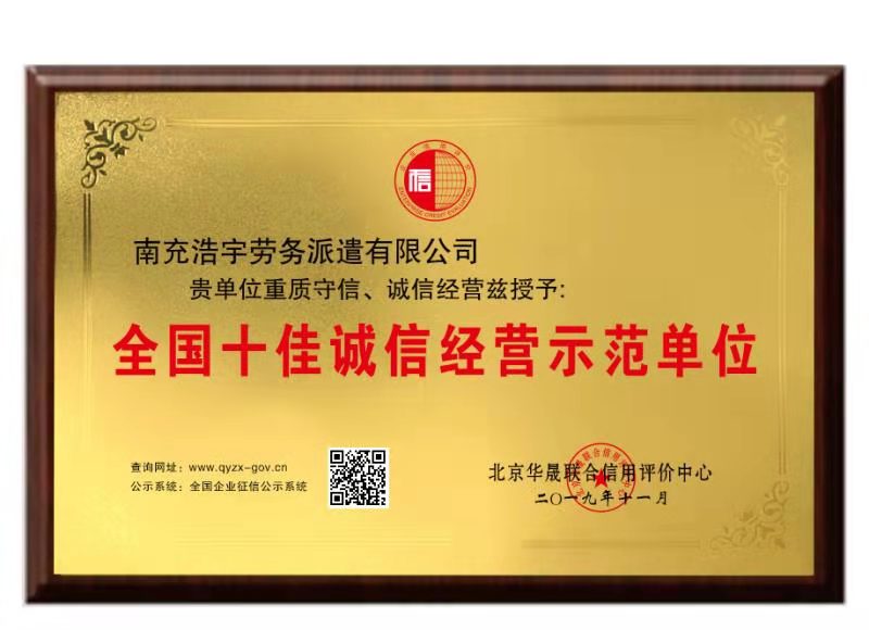我公司獲得全國(guó)十佳誠(chéng)信經(jīng)營(yíng)示范單位